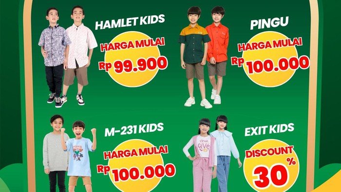 Masih belum cukup, ada juga produk dari Hamlet Kids yang dijual mulai dari Rp 99.900. Kemudian untuk produk dari M-231 Kids dan Pingu juga dijual dengan harga spesial mulai dari Rp 100.000.